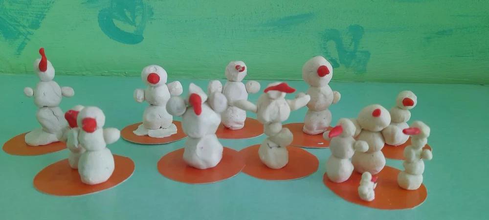 · Пластилиновые чудеса: из мягкого пластилина ребята лепили объёмные фигурки, старательно скатывая снежные комья и добавляя мелкие детали — глазки-угольки и нос-морковку.