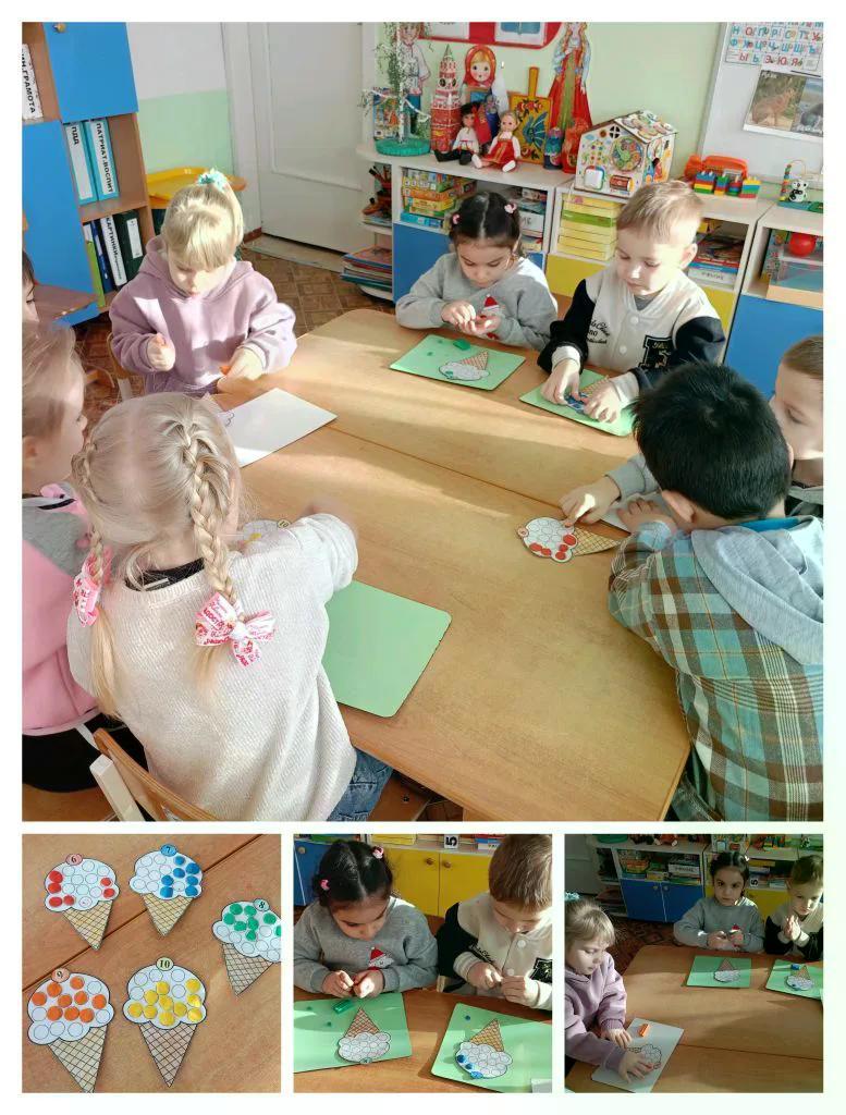 А затем наступило время для сладкого творчества! Вооружившись бумагой, салфетками и пластилином, наши маленькие кондитеры принялись создавать своё собственное, никогда не тающее мороженое. В ход пошли аппликации, комочки бумаги, напоминающие шарики пломбира, и закрученные пластилиновые «рожки». Работы получились настолько яркими, сочными и аппетитными, что их прямо-таки хотелось попробовать! Этот день был не только творческим, но и полезным для ума, воспитанники старшей группы сыграли в «Математическое мороженое». В увлекательной игровой форме они считали «вкусные» шарики, решали задачи на сложение и вычитание и тренировали логику, что доказало: учиться можно весело и очень… сладко!