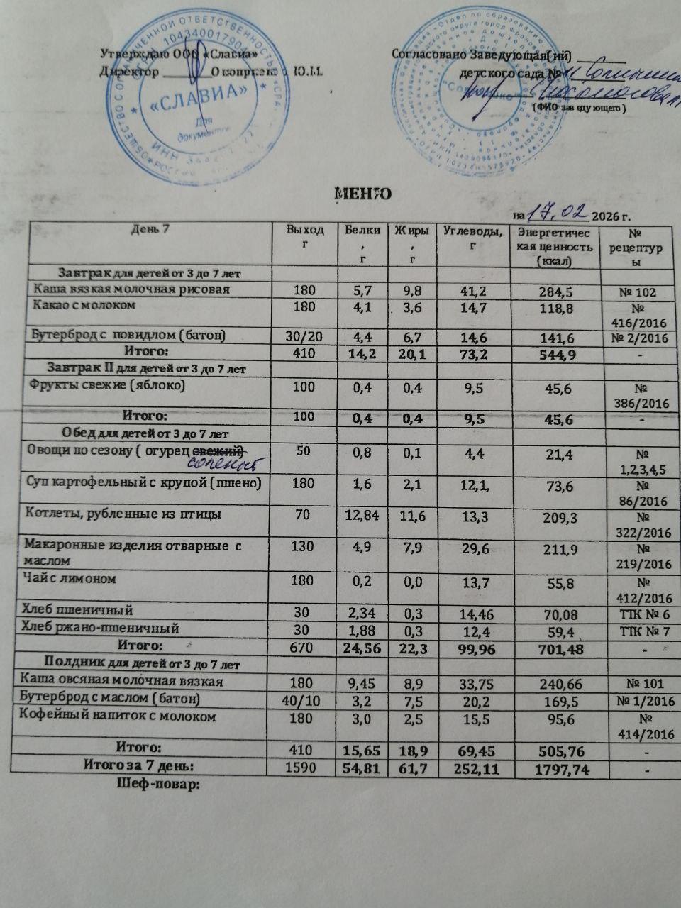 Информируем вас об ассортименте питания