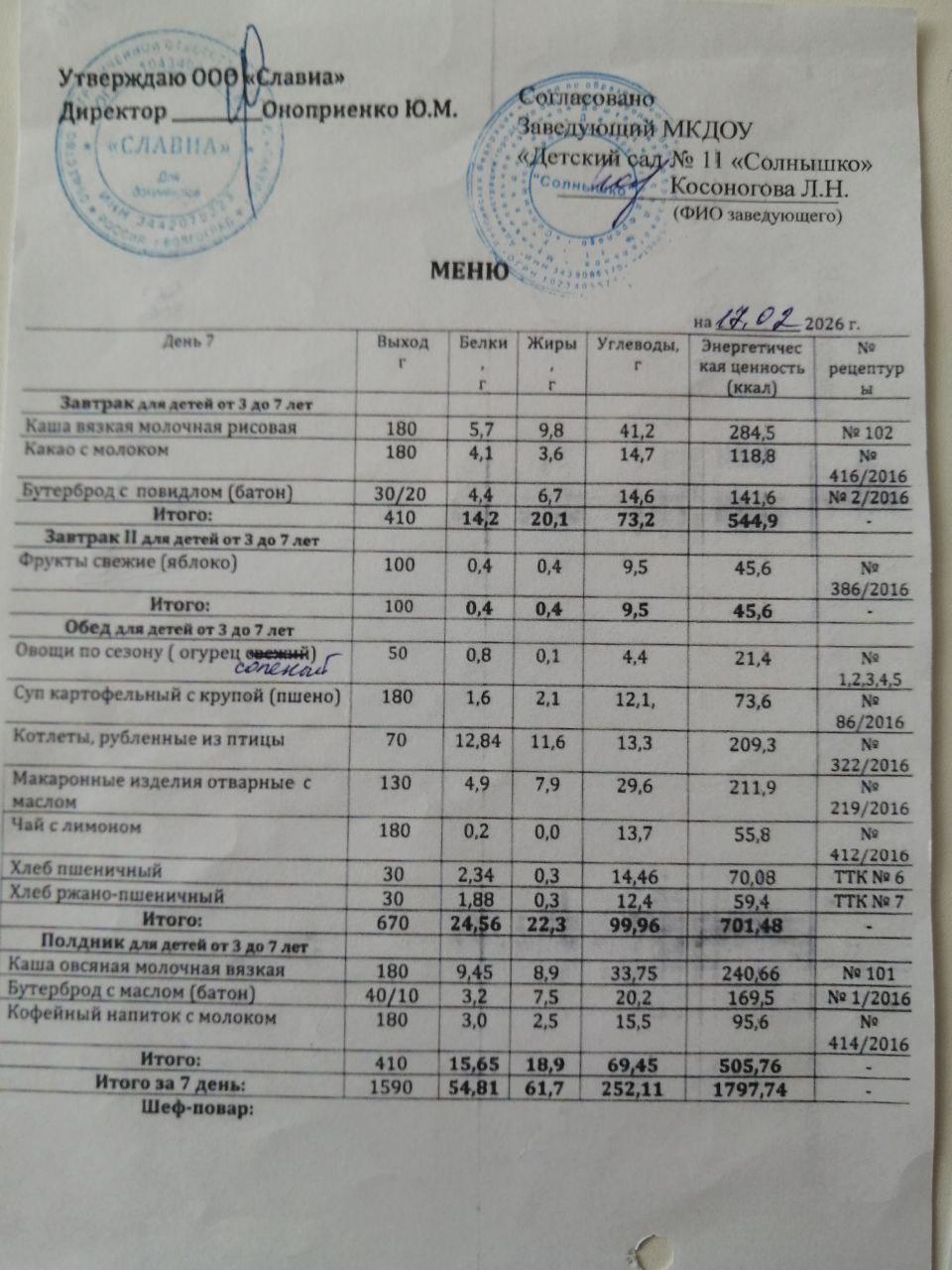 Электронный документ Контракт 11-СК.doc Оказание услуг по организации питания воспитанников в муниципальных казенных дошкольных образовательных учреждениях городского округа г. Фролово Волгоградской области в 2026 году